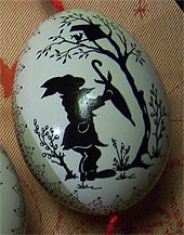 Oberhase Langlöffel richtete eben diese in Richtung des Gebüsches, aus dem ein weinerliches Gefiepse zu hören war. Mit ein paar schulmeisterlichen Hopsern flitzte er zu dem Hasenkind. Das saß da mit einer Miene, als ob die Welt untergegangen wäre. "Was hast du denn?", fragte er mitleidig. Ein Schnief, noch ein Schnief: " Ich möchte so gerne Eier bemalen. Aber da ist die schlimme Vogelgrippe. Die Menschen essen deswegen wahrscheinlich zu Ostern gar keine Eier mehr. Die haben doch Angst!" Erneut schluchzte der kleine Hase auf: "Was mache ich denn dann als arbeitsloser Osterhase?"